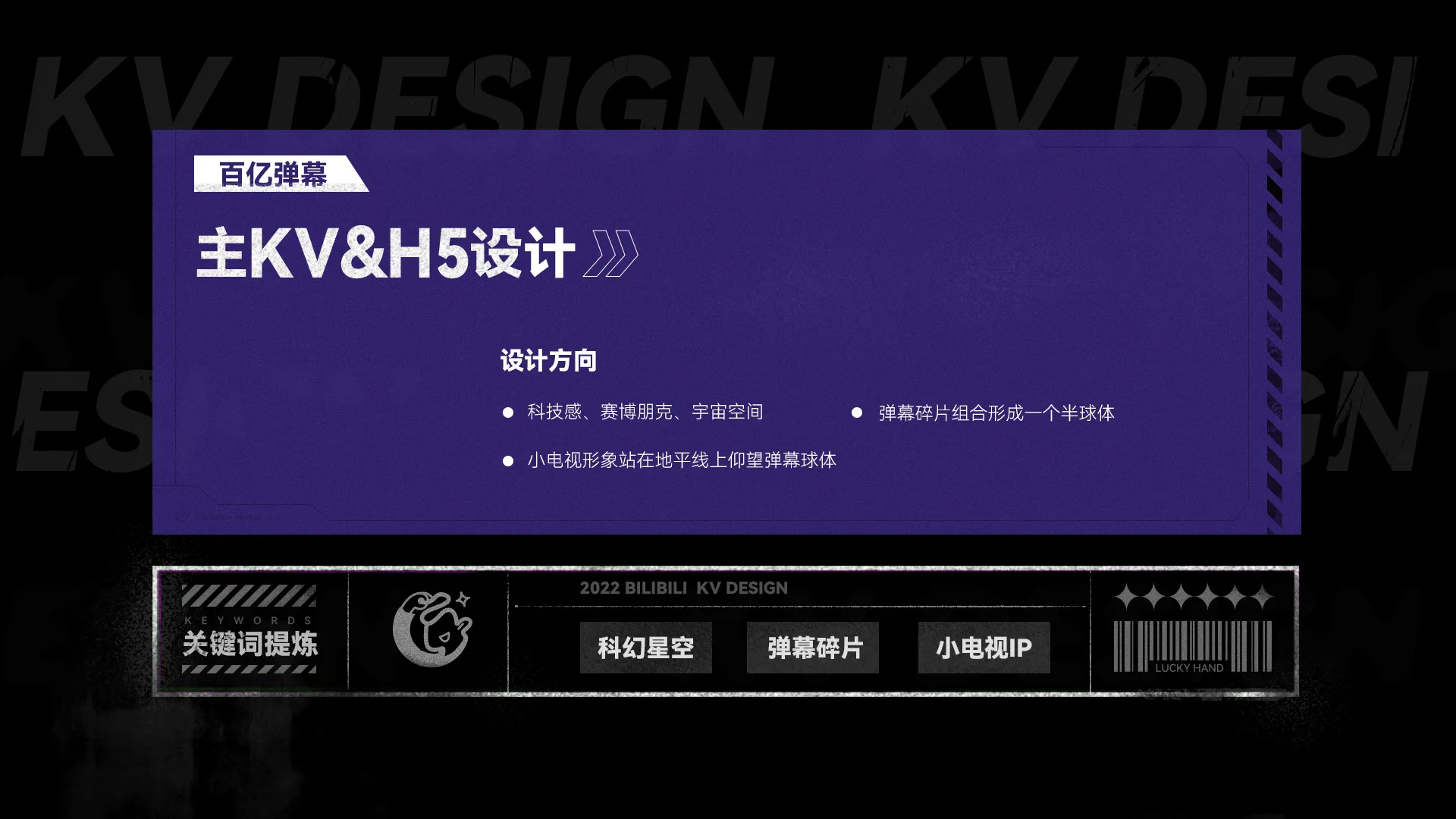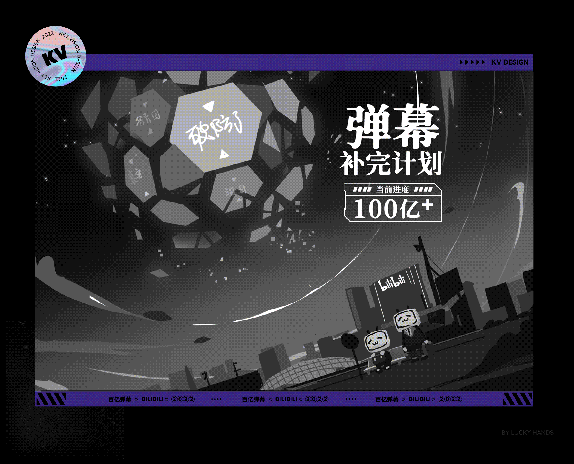 年度百億彈幕活動,以星球碎片為主視覺,從太空中、地平線上,還有從其他方向飛向球體的彈幕,表示所有B站用戶發送的彈幕,構成了彈幕池,集結彈幕文化和賽博朋克風格,展示視覺中心。