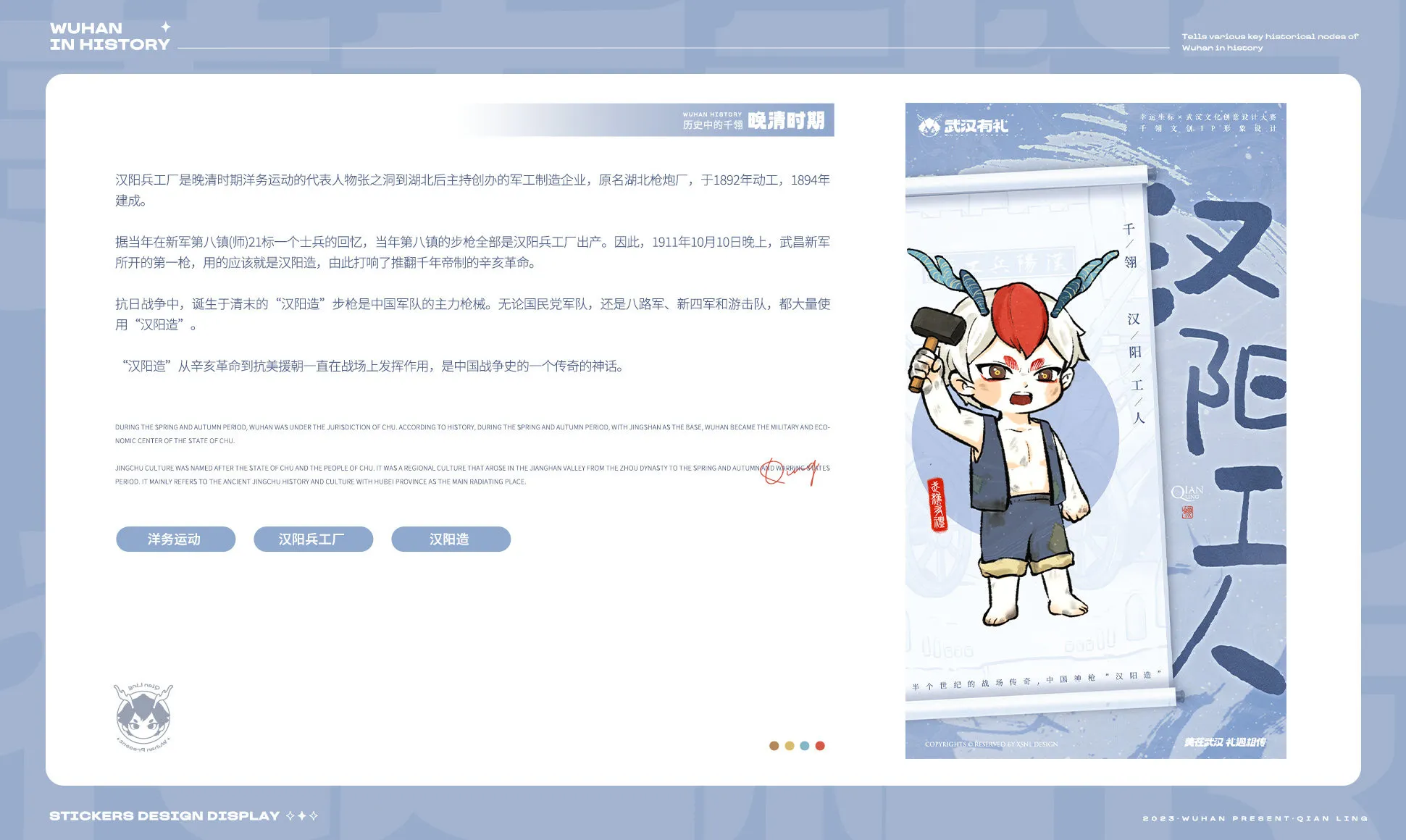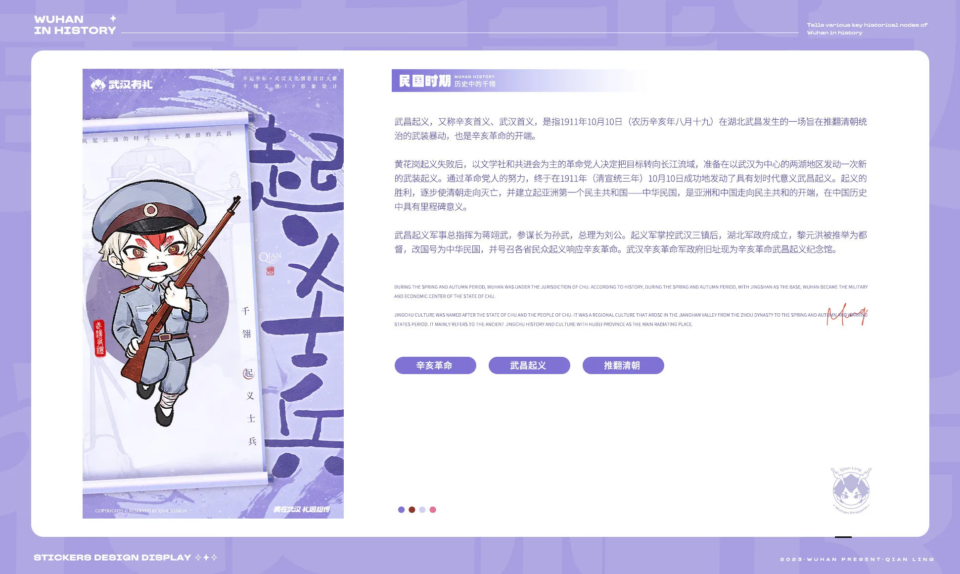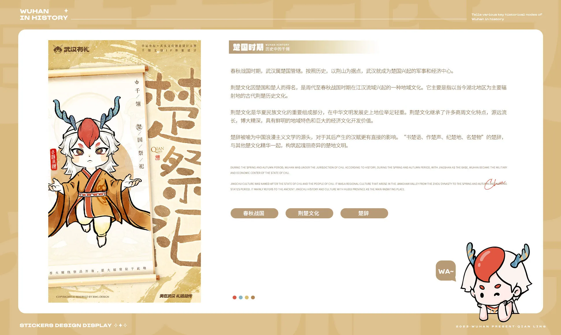 2023首屆武漢文化創意設計大賽由中共武漢市委宣傳部、武漢市商務局、武漢市文化和旅游局共同主辦,旨在推進文化創意IP對實體經濟的助力,深度融合文化創意與城市生產生活,提升城市文化軟實力,打造繁榮興旺的文化英雄城市。有機會參與本次活動并榮獲入圍獎,衷心感謝主辦方和評審老師們的認可。